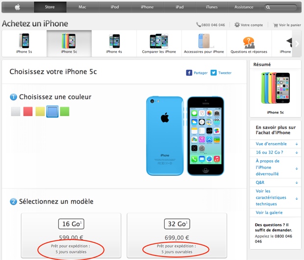 Da questa notte il sistema di preordini di iPhone 5c indica la spedizione prevista in 5 giorni lavorativi: il dettaglio curioso è che la finestra temporale indicata risulta identica nei negozi online della Mela di tutti i principali paesi europei inclusi nel primo lotto di lancio: Germania, Francia e Regno Unito. Anche a Singapore e Australia c’è un stima molto simile 3-5 giorni. Fanno invece eccezione gli Stati Uniti e il Canada, dove chi acquista iPhone 5c con un contratto otterrà il nuovo smartphone subito al giorno di lancio, 20 settembre, invece dovranno attendere fino al 25 settembre (24 settembre in Canada) gli utenti che desiderano il terminale privo di blocchi e di contratto. Ad Hong Kong ancora diverso il caso; qui, terra di predazione da parte dei cinesi che alimentano il mercato grigio, si attende due settimane,