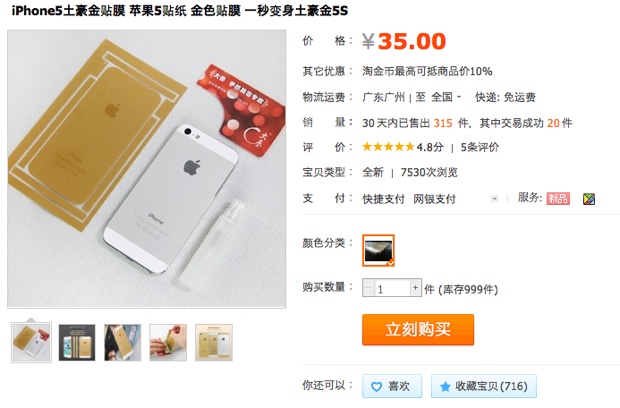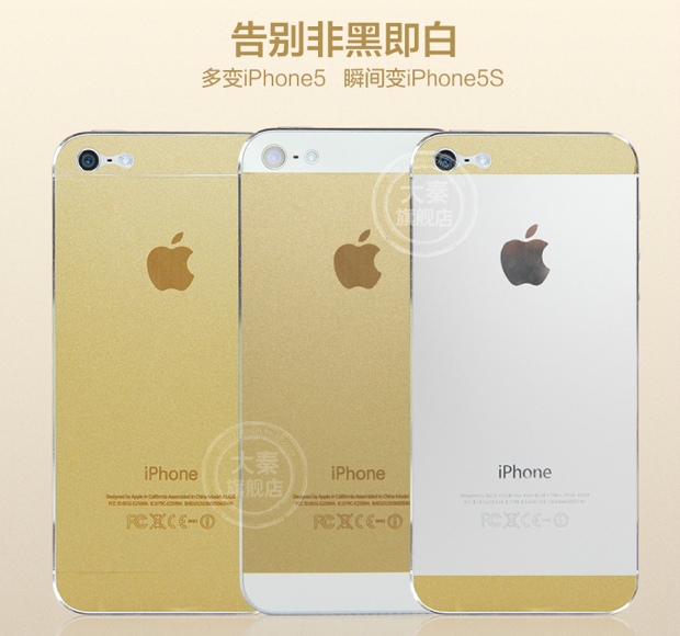 Il colore oro degli adesivi risulta più marcato rispetto alla tinta tenue di iPhone 5s oro di Apple, ma questo probabilmente risponde a una precisa richiesta del mercato: in Cina l’oro è simbolo di benessere e ricchezza. Questo colore impiegato per l’ultimo smartphone della Mela ha incrementato a dismisura la domanda di iPhone 5s oro rispetto alle altre versioni bianca e grigio siderale.