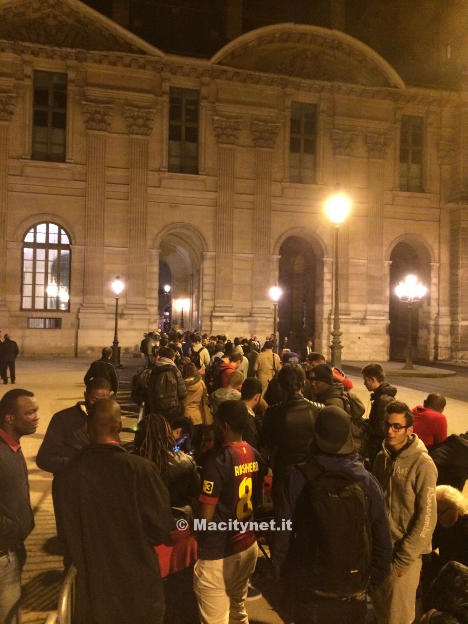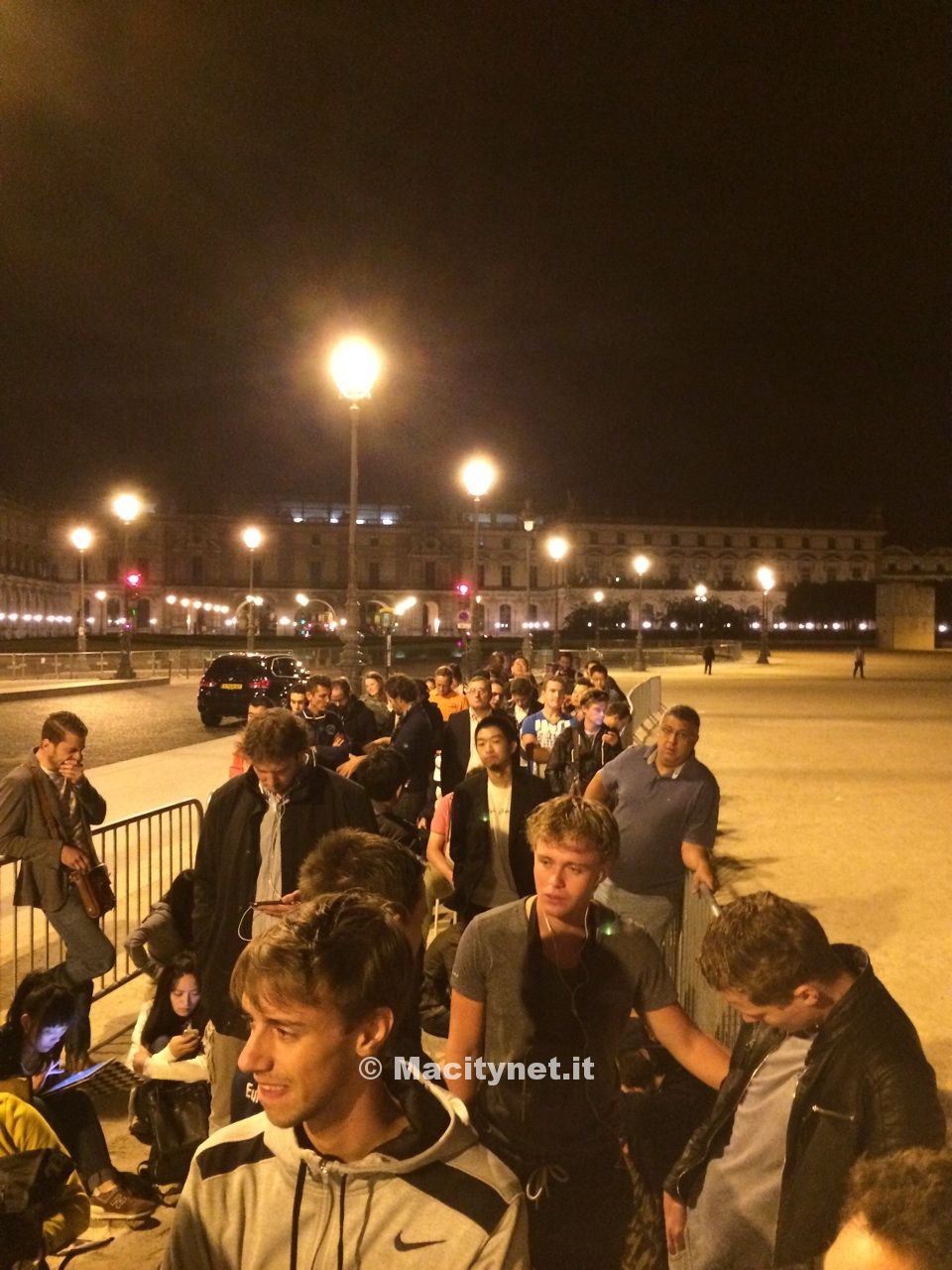 Secondo quanto abbiamo potuto notare, all’Opera la situazione è molto convulsa con tantissime persone. Questa mattina intorno alle tre erano almeno cinquecento quelle in attesa. Poco più tardi di fronte al Louvre, in una notte non fredda ma umida, ne abbiamo contate circa 350. La fila era unica ed è stata suddivisa in due parti, prenotati per il personal pick up e non prenotati intorno alle sette quando sono stati fatti affluire nella galleria del Louvre i primi clienti in fila