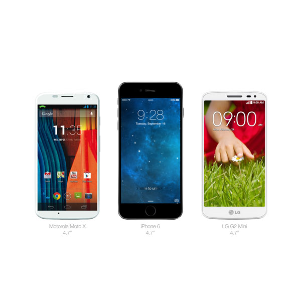 Questa scelta è abbastanza evidente soprattutto in rapporto ad un telefono come il Galaxy S3 che ha uno schermo da 4,7 pollici, ma anche il Nexus 5, Motorola Moto X e LG G2 Mini che sono telefoni da 5 pollici, sono addirittura più corti dell’iPhone 6 anche se più larghi. Ricordiamo che questa scelta di fattore di forma, dovrebbe spingere Apple a cambiare la posizione del tasto di accensione, per rendere più comodo operare su di esso, senza costringere l’utente a qualche “contorsione” con indice o pollice.