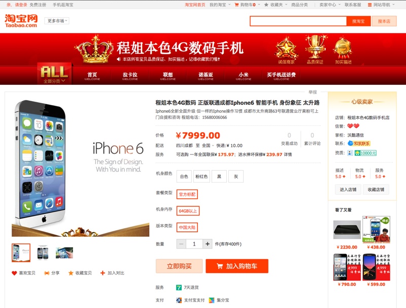 In Cina sono già disponibili i preordini iPhone 6. Il nuovo smartphone deve ancora essere annunciato da Apple ma questo non ha impedito a numerosi rivenditori online di proporre fin da ora i preordini iPhone 6, sia per il modello da 4,7” sia per quello più grande da 5,5 pollici. La maggior parte dei rivenditori, che opera sul portale di compravendite Taobao gestito da Alibaba, dichiara di poter assicurare i nuovi iPhone 6 importandoli dagli USA oppure da Hong Kong.
