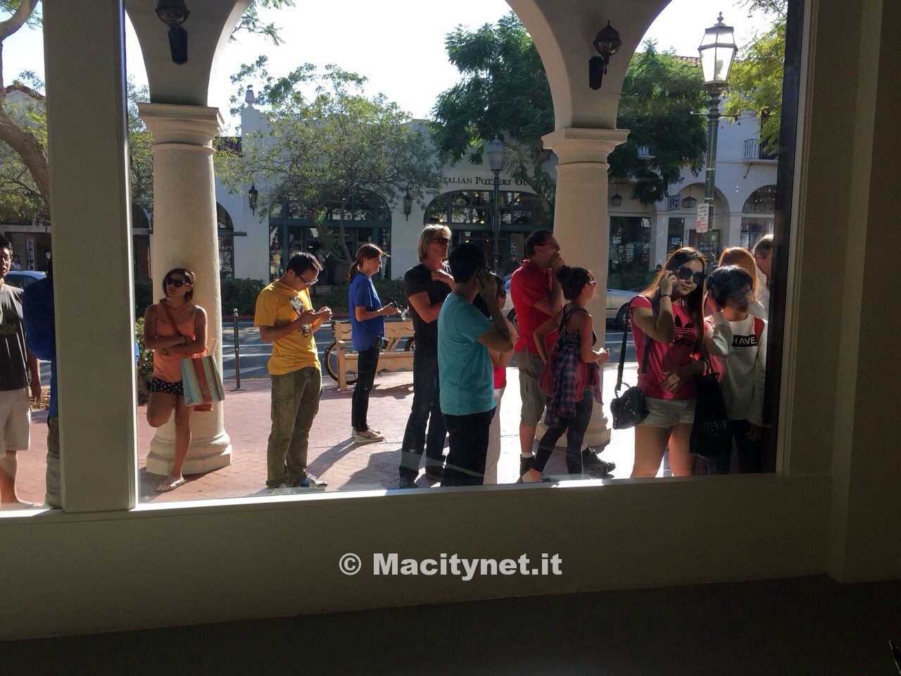Qui sotto le foto inviateci dall’Apple Store di Santa Barbara (California) che testimoniano la fila relativamente tranquilla e ci mostrano l’interno del negozio con tutti i nuovi iPhone esposti.