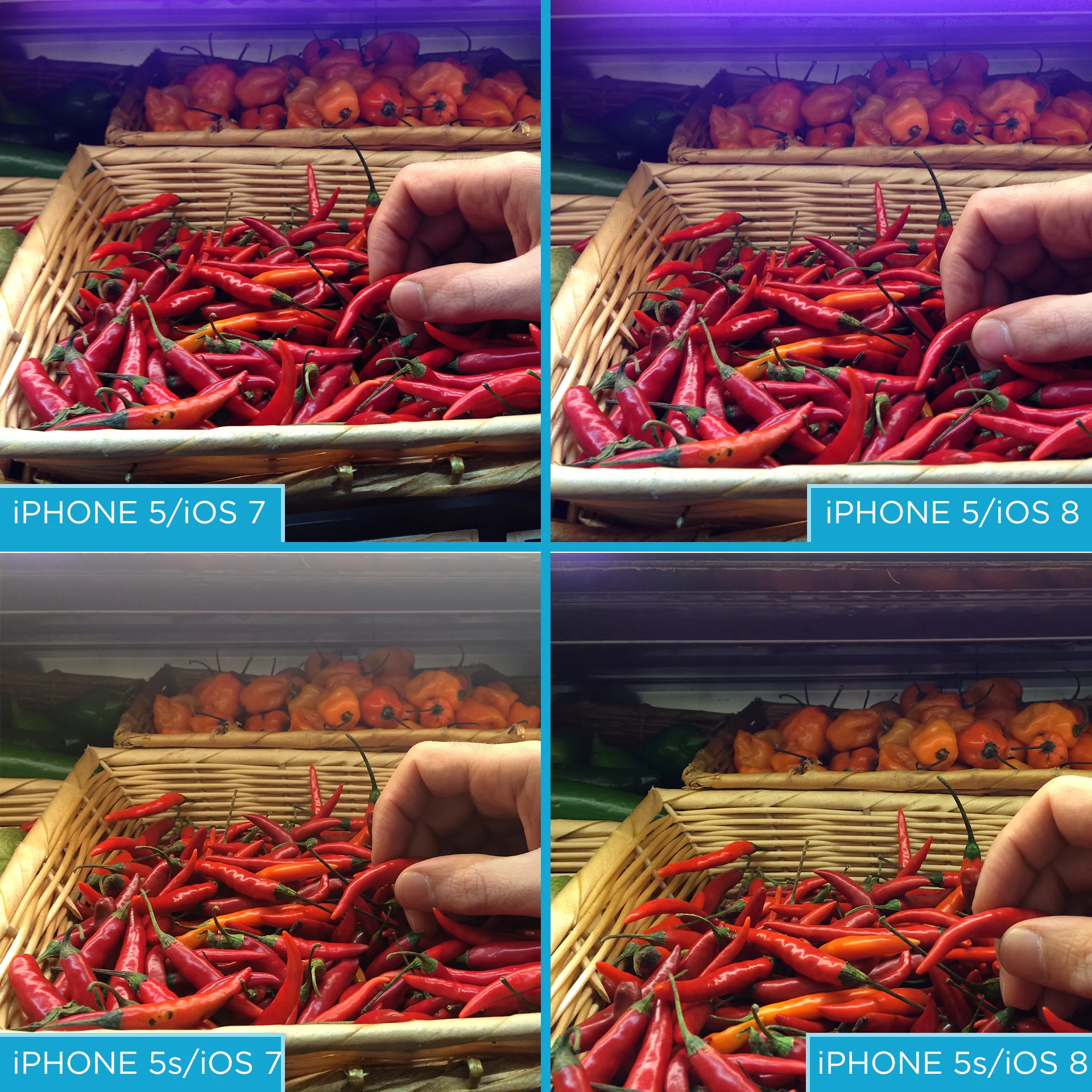 Tom’s Guide evidenzia poi un altro difetto, non nuovo agli iPhone ovvero la presenza di un evidente purple fringing, un’aberrazione cromatica che appare come un alone riflesso violaceo agli estremi di un’immagine che solitamente riprende un immagine in controluce con la fonte luminosa ai bordi dell’inquadratura. In questo caso si tratta di un difetto evidente sugli iPhone 5 e 5S con iOS 8, mentre è limitato o del tutto assente sugli iPhone 5 e 5S con iOS 7, dettaglio che lascerebbe pensare ancora una volta che il difetto sia software.
