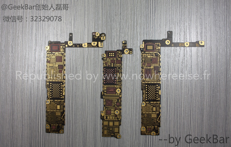 Confrontando le schede logiche dei due nuovi modelli di iPhone 6 attesi è possibile notare alcune differenze: cambia la posizione di alcuni dei contatti per ospitare i chip, qui non installati, risulta diversa la forma del braccio orizzontale che si andrà a posizionare sopra alla batteria, infine risulta diversi i fori per le viti che permetteranno di fissare le due schede ai rispettivi chassis.