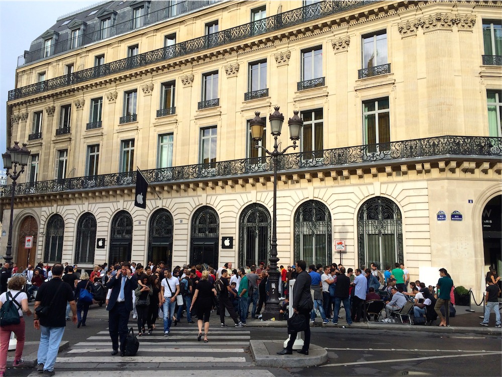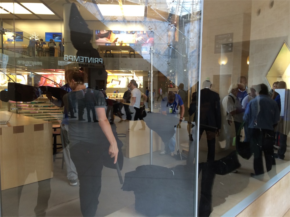 La situazione è decisamente migliore per gli italiani, i russi, gli armeni e anche qualche ragazzo francese che si è messo in fila per acquistare il nuovo iPhone 6 a Parigi nel negozio Apple del Carrousel du Louvre. Qui un ampio porticato ha fornito gradita ombra nelle ore pomeridiane più calde e poi anche un tetto contro la pioggia. A breve però è atteso l’arrivo del personale di sicurezza ingaggiato da Apple che provvederà a organizzare la fila con le transenne, ed è molto probabile che questa verrà ordinata nel cortile della celebre piramide, quindi anche qui tutti all’aperto.