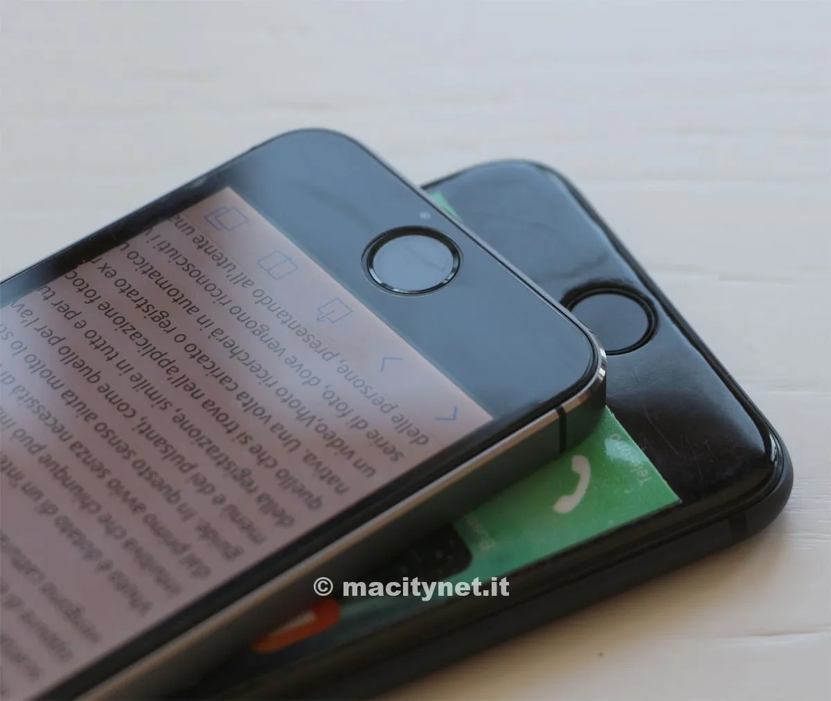 E’ inoltre interessante notare, come si evince dalla foto che accompagna questo articolo che il il bordo del vetro del mockup è curvato e questo permette un maggiore confort nel maneggiarlo, girarlo e nell’accedere alle icone più distanti dello schermo. E’ difficile sapere se questa sarà una caratteristica del prodotto finale ma possiamo osservare che se il produttore del mockup si dato da fare per realizzare una simile particolare ci sono buone probabilità che questa sia una ulteriore novità sui materiali e la forma del nuovo iPhone 6. Una annotazione: il vetro dell’iPhone 5S utilizzato per i confronto era protetto da una pellicola.
