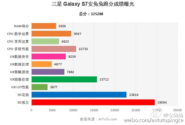 Secondo il test AnTuTu, riportato da GforGames, Galaxy S7 ottiene un punteggio di 125.288, piuttosto elevato ma non sufficiente per battere iPhone 6s Plus che, con i suoi 132.620 punti, era risultato essere lo smartphone più veloce in assoluto nel 2015: ne abbiamo parlato in questo articolo.