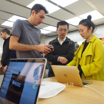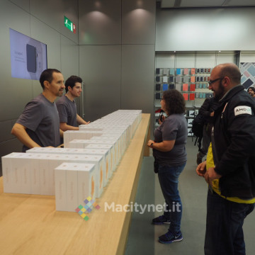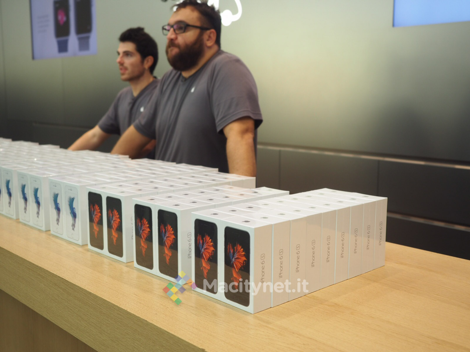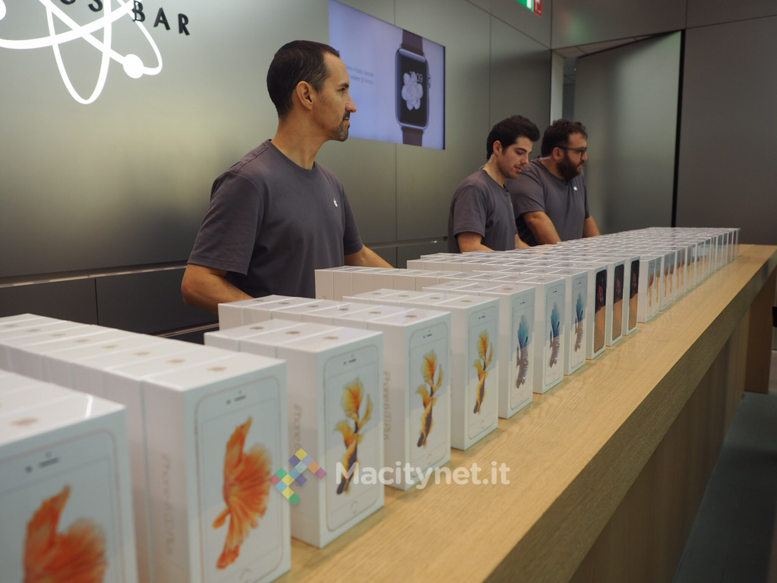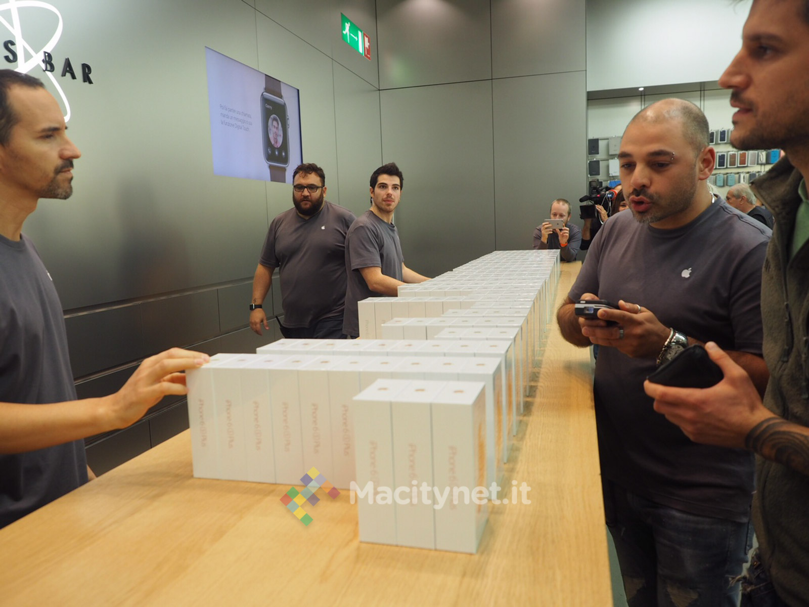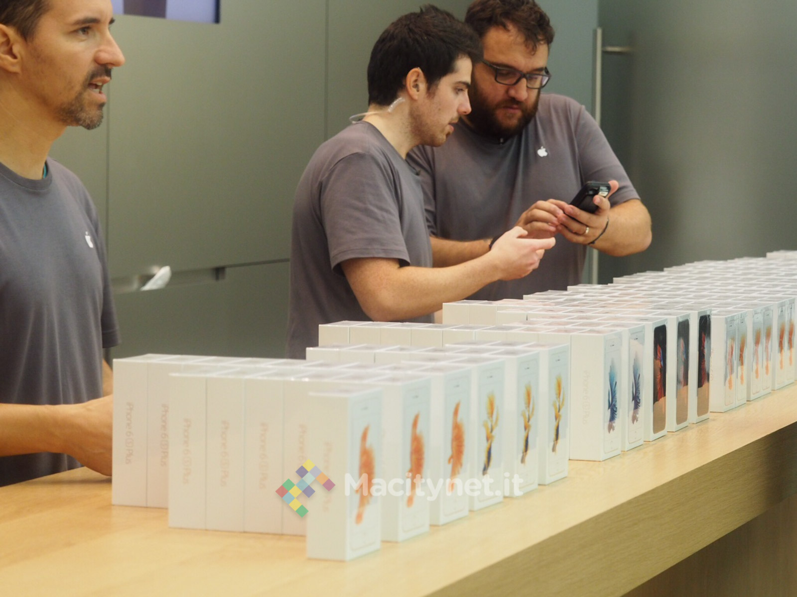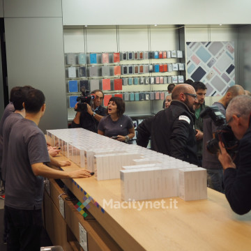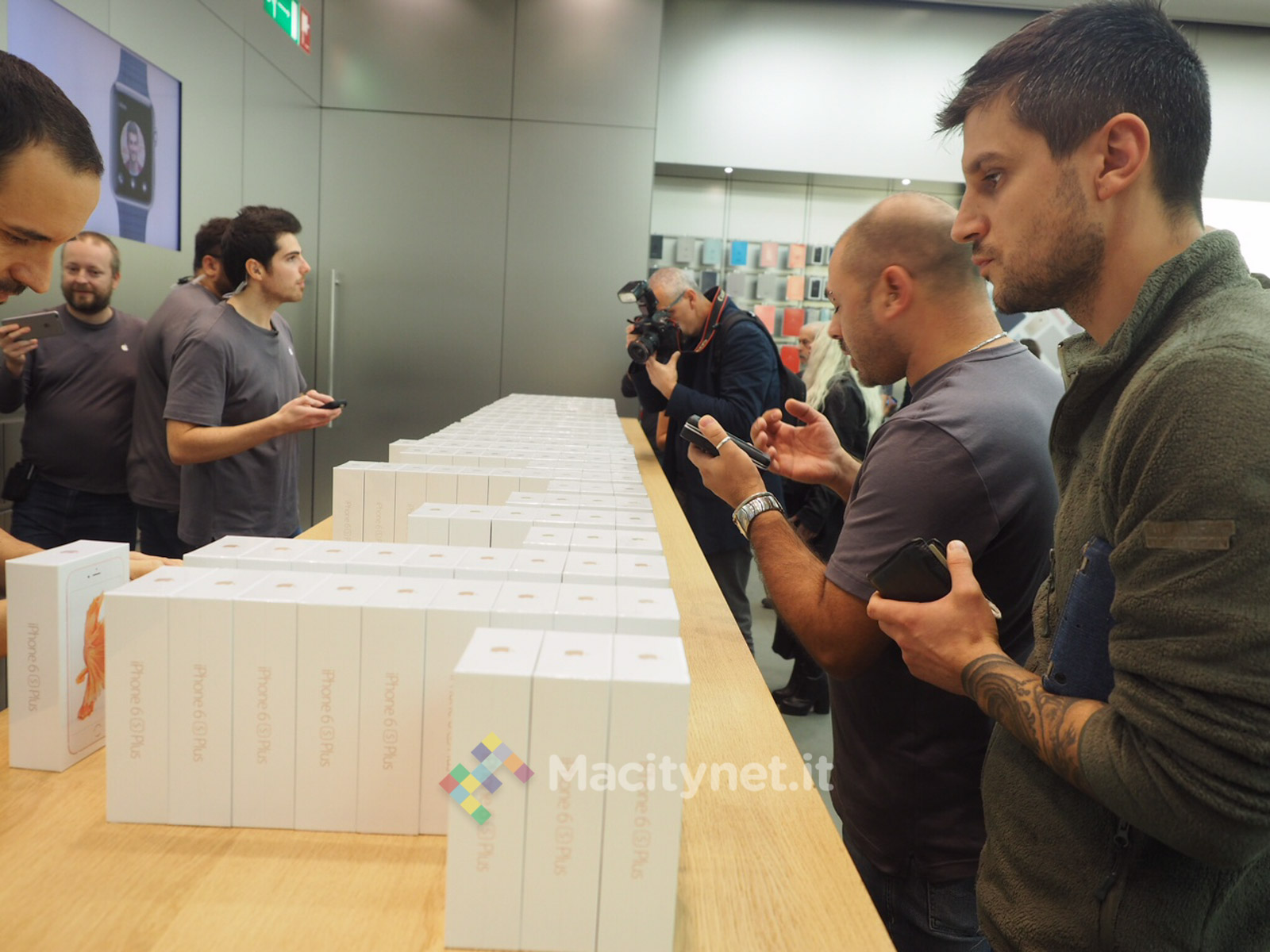 Gli Apple Store di tutta Italia alle 8:00 in punto aprono le porte ed i primi clienti, incitati dal consueto applauso dei dipendenti bene in fila davanti all’ingresso per creare un passaggio, varcano la soglia e si apprestano a raggiungere i banconi di prova o direttamente quello più ampio dell’angolo Genius dove, per l’occasione, sono stati impilati diversi modelli dei nuovi telefoni, pronti per essere consegnati ai primi acquirenti.