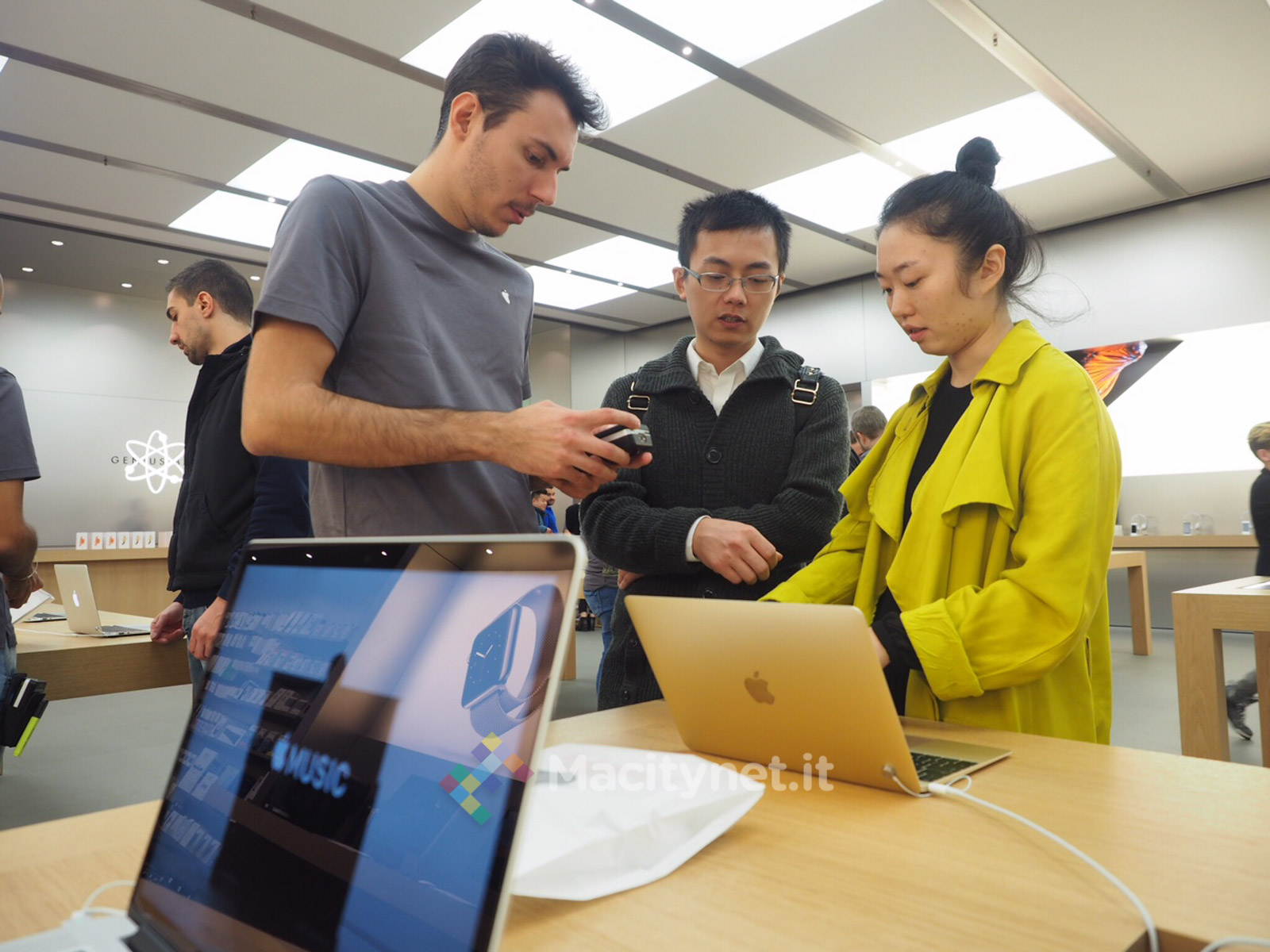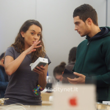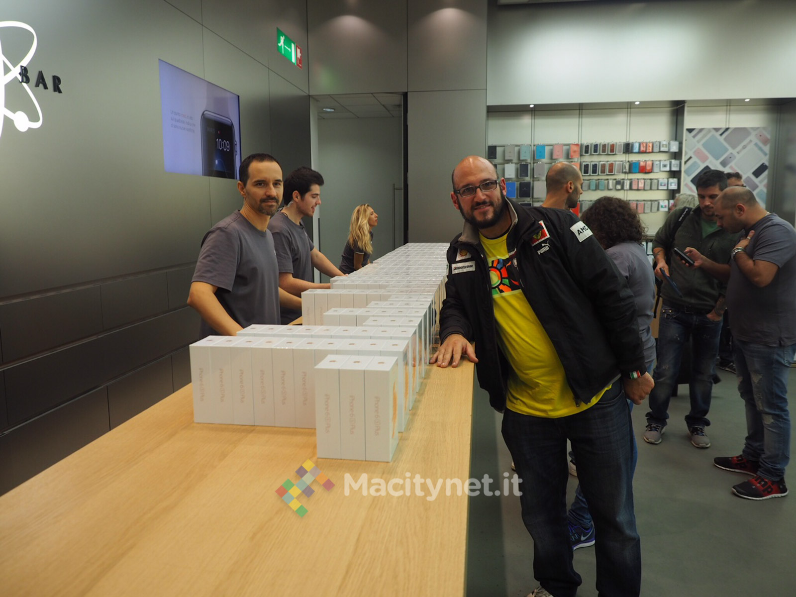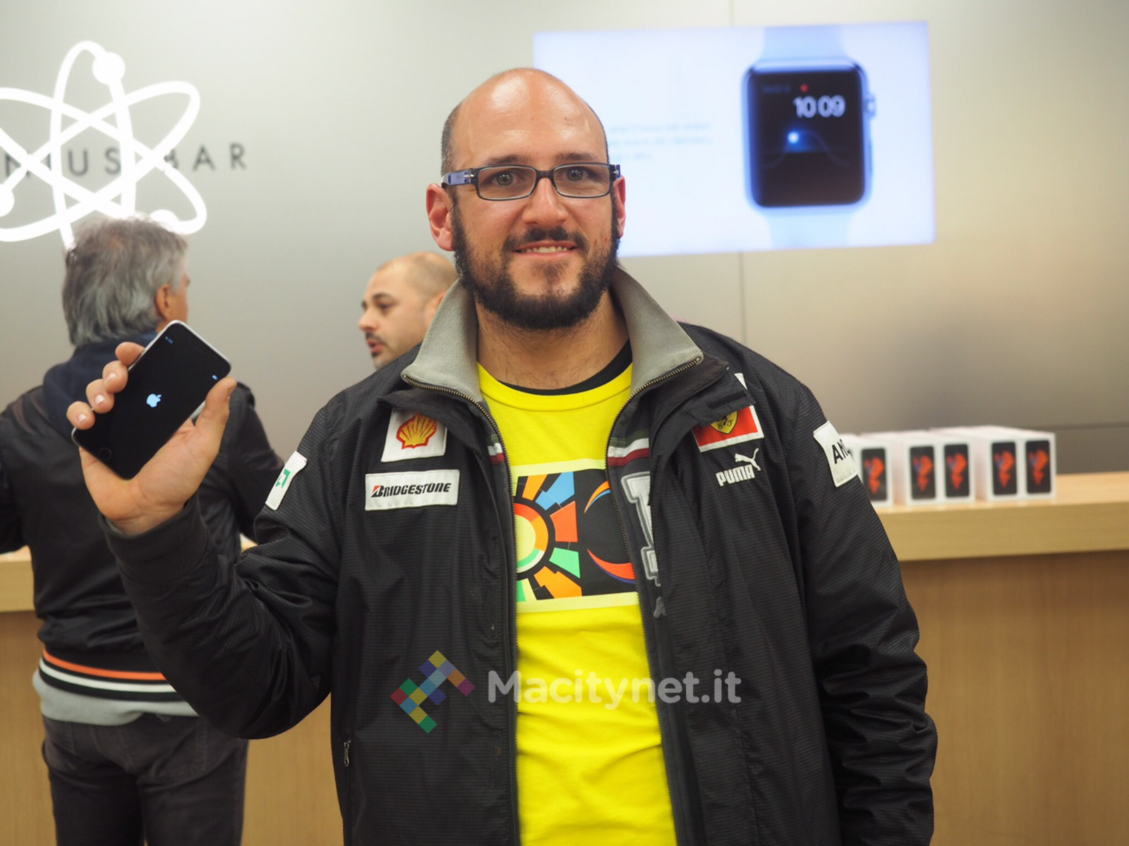 Valerio è il primo ad uscire dal negozio con il suo nuovo iPhone 6s grigio siderale, già scartato ed avviato per procedere subito con la configurazione iniziale, quella che porterà all’attivazione del telefono e la conseguente esplorazione di tutte le novità, tra cui lo schermo 3D Touch che porta l’interazione con il touchscreen ad un livello superiore ed alla nuova fotocamera da 12 MP che combina una nuova tecnologia di acquisizione di fotografie “animate”.