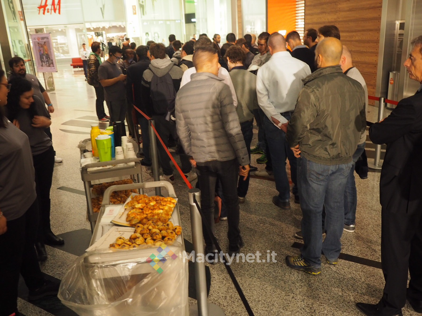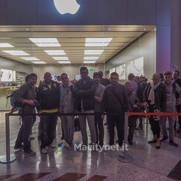Nel momento in cui scriviamo le porte sono ancora chiuse, i telefoni sono però già pronti sui banconi per essere messi alla prova dai clienti che entreranno nel negozio prima di acquistarne uno. I dipendenti dei negozi sono già pronti e stanno concludendo il consueto briefing con le ultime direttive per gestire al meglio quella che si appresta ad essere una vendita dei nuovi smartphone sicuramente più rapida ed ordinata.