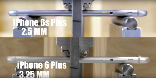 Mentre il primo iPhone 6 Plus si fletteva di 3,25 mm se sottoposto a un peso di 100 libbre, circa 45 kg, il nuovo iPhone 6s Plus si piega solamente 2,5 mm ma la differenza sostanziale è che una volta cessata la forza, il nuovo smartphone ritorna alla sua forma originale senza riportare alcun danno, viceversa il Plus del 2014 manteneva una deformazione plastica di 1 mm.