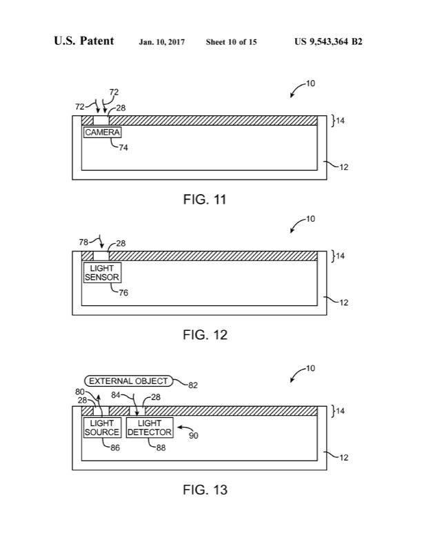 Tutti questi componenti e sensori possono essere posizionati dietro al display, come descrive un brevetto Apple con data originale del 2011, rinnovato da Cupertino a febbraio 2015, ora ripubblicato e segnalato da AppleInsider. La nuova soluzione consiste in micro fori e aperture che risultano invisibili all’’occhio umano ma che offrono le necessarie aperture per i componenti sottostanti. In questo modo il sensore per la fotocamera frontale, il sensore di prossimità, quello che rileva la luce ambientale e persino il più ingombrante tasto Home possono essere tutti installati dentro al display e letteralmente scomparire dalla vista, rendendo per la prima volta possibile uno smartphone con un form factor nuovo: un terminale con frontale tutto display, un monolite di cristallo come quello più volte indicato da Jony Ive. Da notare che gli schermi LCD, che richiedono un pannello di retro illuminazione, sono meno indicati per questa soluzione che invece sembra decisamente più fattibile con display OLED o AMOLED, entrambi dotati di pixel che si auto illuminano. Ma il brevetto offre altri spunti interessanti: in alcune aree gli schemi tecnici mostrano una zona completamente trasparente dello schermo che lascia intravvedere l’utente attraverso lo schermo. In queste speciali finestre il display c’è ma è invisibile, permettendo così di visualizzare dati, grafica e informazioni sovrapponendole al mondo reale. Questo lascia campo aperto per applicazioni di realtà aumentata e anche per schermi HUD, come quelli trasparenti già installati in diverse automobili. Ormai da mesi le anticipazioni sostengono a gran voce che Apple introdurrà il suo primo smartphone OLED con iPhone 8 quest’anno, o come verrà chiamato a settembre quando arriverà sul mercato. Cupertino studia da anni soluzioni per far scomparire tutto dalla parte frontale del terminale, per poter costruire un iPhone tutto schermo. La speranza è che queste soluzioni saranno implementate in iPhone 8 che potrebbe così diventare il monolito agognato da Jony Ive. Ma anche se tutto ciò non si avvererà quest’anno è praticamente certo che tecnologie e brevetti non verranno accantonati: da sempre Apple studia soluzioni per semplificare hardware e software. Più di una semplice ipotesi che potrebbe avverarsi o meno, il monolito di cristallo sembra essere l’evoluzione definitiva dei tablet e degli smartphone così come li abbiamo conosciuti fino a oggi.