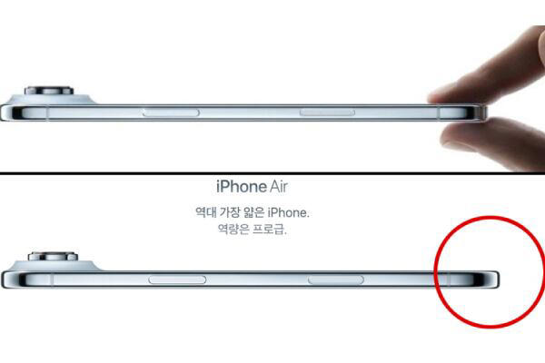 Sulle varie pagine web del sito Apple dedicate all’iPhone Air l’azienda esalta leggerezza (165 grammi), spessore (solo 5,64cm) e robustezza, mostrando l’immagine del telefono sostenuto in mano solamente tra due dita, accompagnata da slogan del tipo: “L’iPhone più sottile. La potenza di un Pro”.