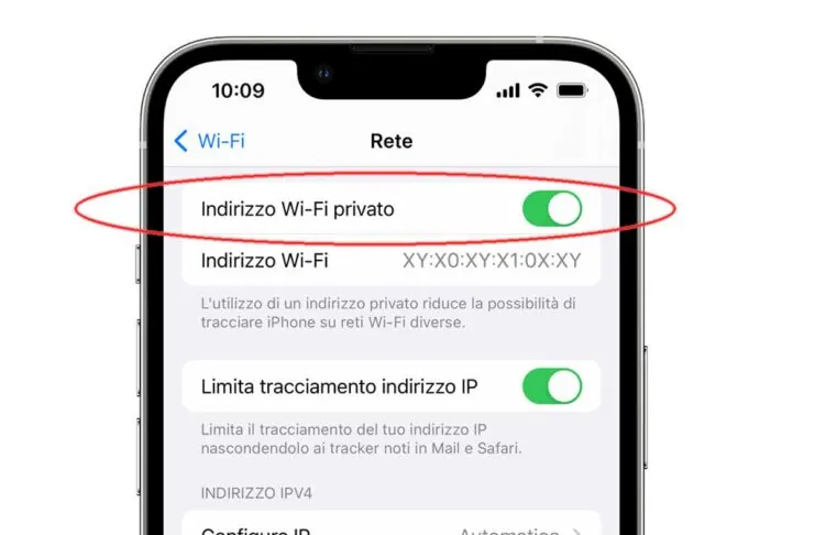 Se per qualche motivo è necessario disattivare questa funzione (ma è consigliabile lasciarla attiva per una maggiore privacy), basta aprire Impostazioni, toccare WiFi, da qui il pulsante “i” accanto alla rete e attivare/disattivare la voce.