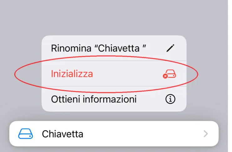 Collegando una unità esterna, è possibile aprire l’app File, da “Posizioni” selezionare l’unità, tenere premuto sul nome e scegliere “Inizializza”: a questo punto, alla stregua di quanto è possibile fare con Utility Disco su macOS, è possibile indicare il nome e il formato, scegliendo tra: APFS, exFAT e MS-DOS (FAT); sono presenti anche le opzioni “Case sensitive” (distingue maiuscole/minuscole) e “Encrypted” (codificato, formato che richiede una password e codifica la partizione).