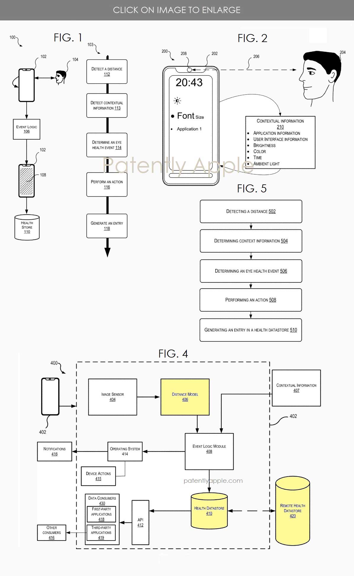 Il brevetto prevede un procedimento che può comprendere il rilevamento automatico del problema da parte dell’iPhone, tenendo conto di fatto, come ad esempio quanto l’utente tiene a distanze il display dal viso. Nel brevetto sono descritte varie tecniche per capire se il problema è presente, quante volte si è verificato e la risposta a determinati eventi relativi alla salute degli occhi.