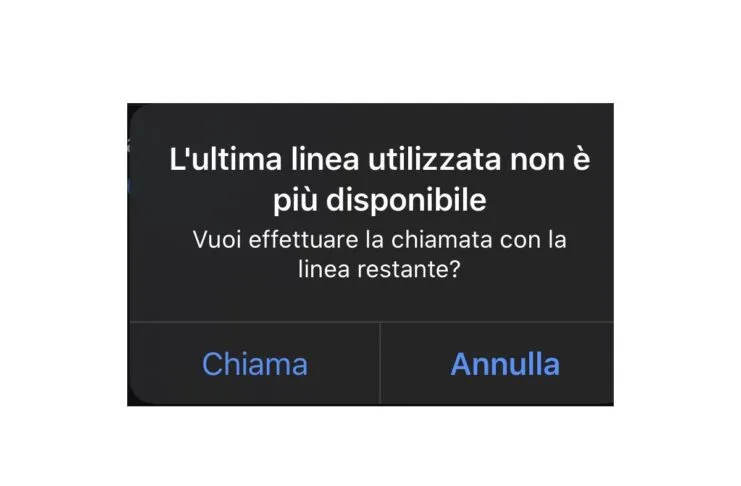 L’errore appare in particolari casi su iPhone 11, 12 e 13 e fa riferimento al tentativo di chiamare sfruttando l’eSIM (laa SIM digitale che è possibile attivare con un piano cellulare con il proprio operatore telefonico senza dover usare una nano-SIM fisica), anziché la SIM fisica.