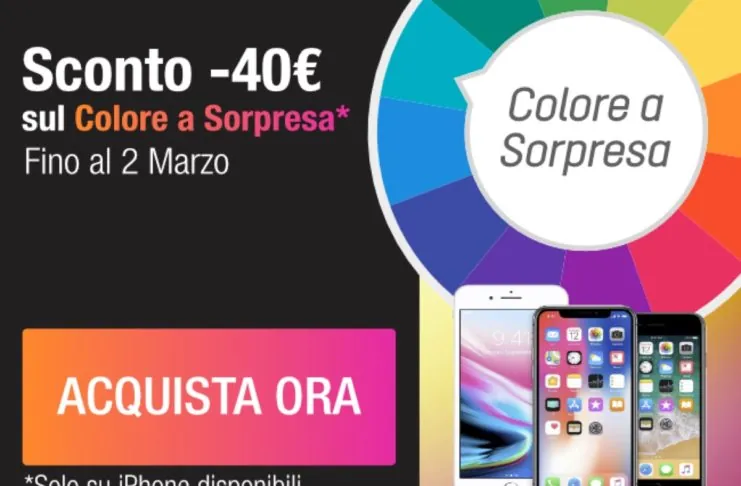 Se state pensando di acquistare un nuovo iPhone e volete risparmiare ben 40€, fino al 2 Marzo su TrenDevice potete approfittare della promozione dedicata al Colore a Sorpresa, ideale per chi non ha particolari preferenze per la scelta del colore.