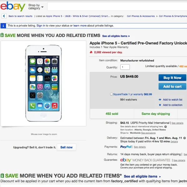 Apple non lo ha dichiarato ufficialmente ma è presente su eBay con il nome utente factory_certified: tramite questo account vengono proposti consistenti stock di iPhone usati ricondizionati, forniti con un anno di garanzia. Questo non rappresenta una novità in sé: anche in Italia esistono diverse società che acquistano e vendono iPhone e iPad usati con garanzia, solo che per il rivenditore eBay factory_certified