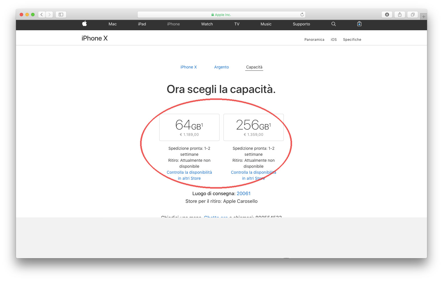 I tempi di consegna indicati sull’Apple Store statunitense per iPhone X continuano a migliorare e ora il dispositivo è previsto in consegna entro cinque giorni, in pratica una settimana. Ordinando oggi iPhone X negli USA, la data di consegna indicata è l’8 dicembre. Nel nostro Paese, su Apple Store online, per il momento non sembra essere cambiato nulla e, sia per il modello da 64GB, sia per il modello da 256GB, l’indicazione è sempre uguale: “Spedizione pronta: 1-2 settimane”, indipendentemente se si sceglie come colore grigio siderale o argento.