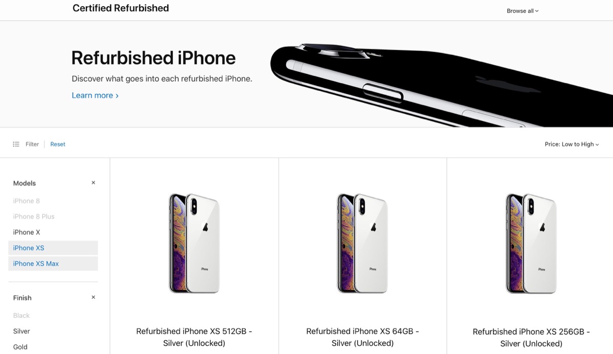 Come dicevamo al momento il lancio tra i ricondizionati è avvenuto solo nei negozi Apple degli Stati Uniti ma presto potrebbero arrivare anche da noi. Al momento i clienti americani possono scegliere tra iPhone XS e iPhone XS Max in una delle due colorazioni e nei diversi tagli di memoria esistenti.