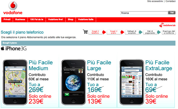 Da qualche ora sul sito Web Vodafone è disponibile uno sconto di 30 euro sul prezzo di acquisto di iPhone 16GB, per chi sottoscrive un abbonamento biennale direttamente da Internet. La pagina dell’operatore dedicata ad iPhone 3G da 16GB è raggiungibile direttamente da questo collegamento.