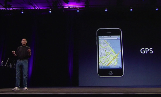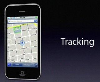 Durante il keynote di Steve Jobs della WWDC del 9 giugno 2008, un video ha mostrato al pubblico dei presenti la funzione di tracciamento. Grazie al GPS integrato il nuovo iPhone 3G permette di visualizzare all’interno di Mappe la reale posizione corrente dell’utente. Nell’esempio il puntino blu che indica la posizione segue con precisione tutte le curve e le svolte di Lombard Street, una caratteristica strada panoramica di San Francisco, tipica meta dei turisti che visitano la città .