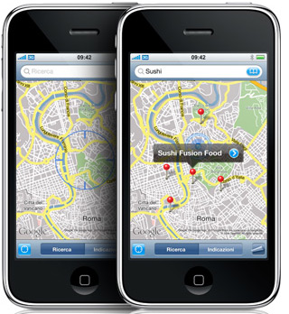 iPhone non è stato il primo smartphone a integrare il GPS e la localizzazione cellulare, senza dubbio però è stato uno dei primi a integrare anche il posizionamento via Wi-Fi, anche se per il momento questo offre una vera utilità pratica in USA e solo nelle zone centrali delle città europee più importanti. Quello che importa sottolineare è che iPhone 3G è stato il primo smartphone a sfruttare appieno tutte queste tecnologie di localizzazione per offrire funzioni nuove, facili da utilizzare e utili per l’utente finale.