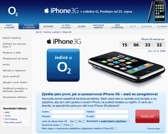 In queste ore si rincorrono gli annunci degli operatori di telefonia mobile nei paesi interessati dall’imminente lancio di iPhone programmato per il giorno 22 agosto. Le ultime notizie riguardano comunicati ufficiali degli operatori di Repubblica Ceca, Estonia, Romania e Filippine. Per la Repubblica Ceca l’operatore Telefonica ha attivato una pagina dedicata a iPhone con tanto di conto alla rovescia fino al 22 agosto e di un breve form da compilare per ricevere ulteriori informazioni.