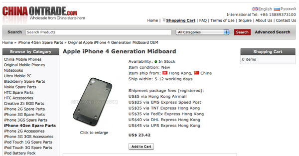 Mentre appassionati e media si aspettavano un nuovo iPhone per la prossima primavera-estate, il sito di e-commerce China Ontrade ha recentemente inserito nel proprio catalogo un componente destinato niente meno che all’iPhone di quarta generazione. Si tratta della midborad, vale a dire il componente interno su cui viene montata l’intera scheda madre dello smartphone: China Ontrade la propone per l’acquisto al modico prezzo di circa 23 dollari, circa 15 euro.