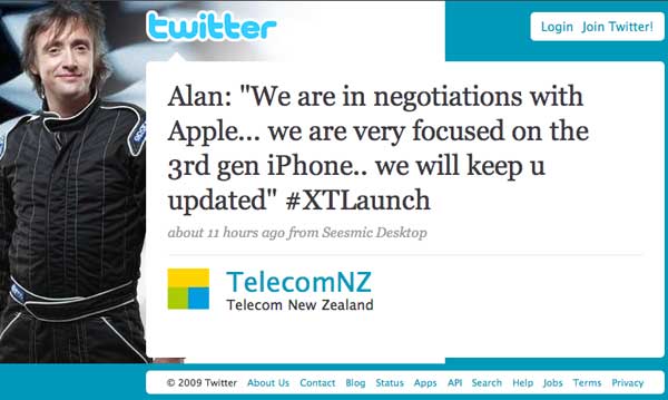 L’operatore mobile Telecom della Nuova Zelanda è in trattative avanzate con Apple per la futura commercializzazione dell’iPhone di nuova generazione. L’anticipazione è stata annunciata direttamente da un dirigente della società , per la precisione Alan Gourdie, responsabile retail di Telecom NZ, tramite un messaggio Twitter che sta facendo il giro del mondo. Nel post su Twitter il dirigente sostiene che “Siamo in trattative con Apple…siamo molto focalizzati sull’iPhone di terza generazione…vi terremo aggiornati”. Si tratta della prima anticipazione semi ufficiale di trattative in corso che riguardano la nuova generazione di iPhone.