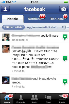 Facebook. Che goda di una diffusione planetaria è fuori discussione: professionisti, studenti, casalinghe, ragazzini, tutti usano Facebook per restare in contatto con i propri amici, familiari e colleghi di lavoro e non poteva certo mancare un’applicazione ad hoc per iPhone e iPod Touch. La nuova versione da poco approdata su AppStore garantisce la compatibilità piena con il nuovo firmware 3.0. Localizzata in italiano, l’applicazione permette una gestione pressocchè completa del proprio account: profilo, status, posta, ricerca di amici, chat, invio di foto scattate con la camera di iPhone o scelte dalla libreria.