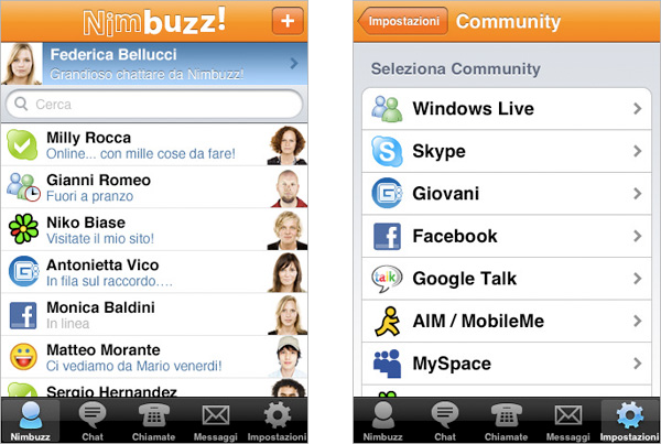 Nimbuzz rientra tra i programmi di messaggistica istantanea multiprotocollo più scaricati. La poliedricità dei protocolli supportati (Skype, Yahoo! Messenger, AIM, Facebook, MySPace, GoogleTalk, MSN, ICQ, ecc) consente di chattare, interagire con Facebook ed effettuare chiamate VoIP verso i propri contatti, gratuitamente, e verso telefoni fissi e mobili: tale soluzione, specie nel caso di telefonate a numeri internazionali, consente un notevole abbattimento dei costi grazie alle vantaggiose tariffe offerte da servizi come SkypeOut. A differenza di altre applicazioni, Nimbuzz permette il VoiP anche in 2G e 3G oltre che in Wifi, mediante l’esclusivo servizio Dial-Up VoIP che consente di chiamare, attraverso un numero locale, un server Nimbuzz che trasferisce la telefonata al numero desiderato, ovunque esso sia. Nel momento in cui scriviamo non è ancora disponibile il supporto alla push notification ma lo sviluppatore ne ha promesso a breve l’implementazione.