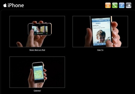 Nel primo denominato ‘Never been an iPod’ (non c’è mai stato un iPod) mostra alcune delle potenzialità del telefono nel trattamento del multimedia, audio e video. Il secondo, che si chiama ‘How To’ si concentra sulla facilità d’utilizzo dell’interfaccia. In ‘Calamari’ il telefono viene usato prima per vedere la parte del film ‘Pirati dei Carabi’ , poi per fare una ricerca su una mappa di San Francisco alla ricerca di un ristorante (che si chiama Calamari, appunto). Tutti i filmati si chiudono con il telefono che fa, appunto, il telefono.