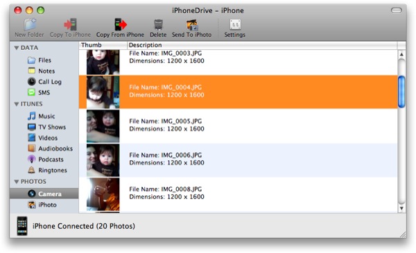 Tramite il programma iPhoneDrive, sviluppato per Mac da Ecamm Network, i due apparati della Mela disporranno anche di questa opzione: una comoda interfaccia in stile Apple, renderà semplice scambiare dati fra Mac, iPhone e iPod touch, e viceversa.