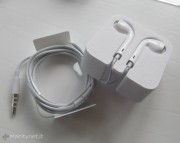 Dietro i manualetti i due sol accessori compresi nella confezione: il cavo USB-Lightning e le nuove cuffie di buona qualità
