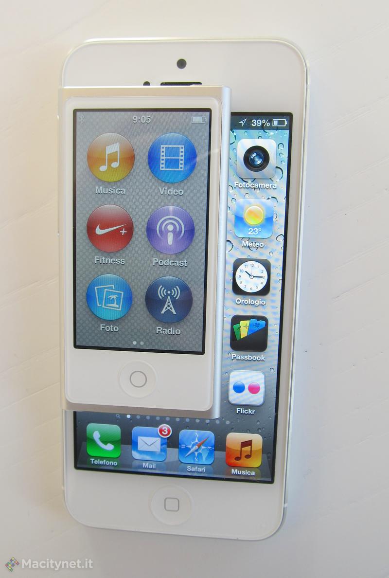 Alta e stretta quella di nano touch, ribassata e più larga quella di iPod touch di quinta generazione