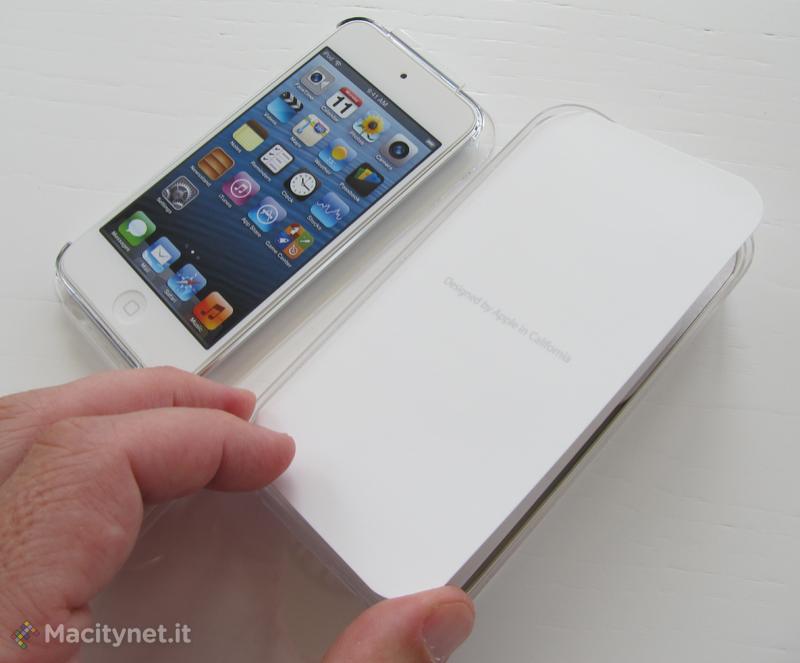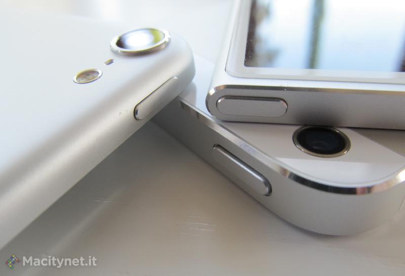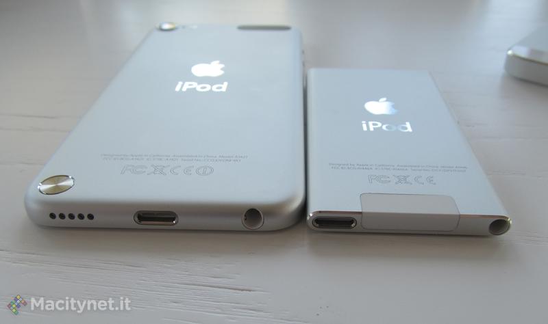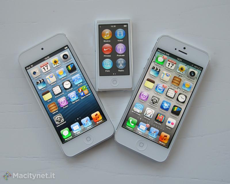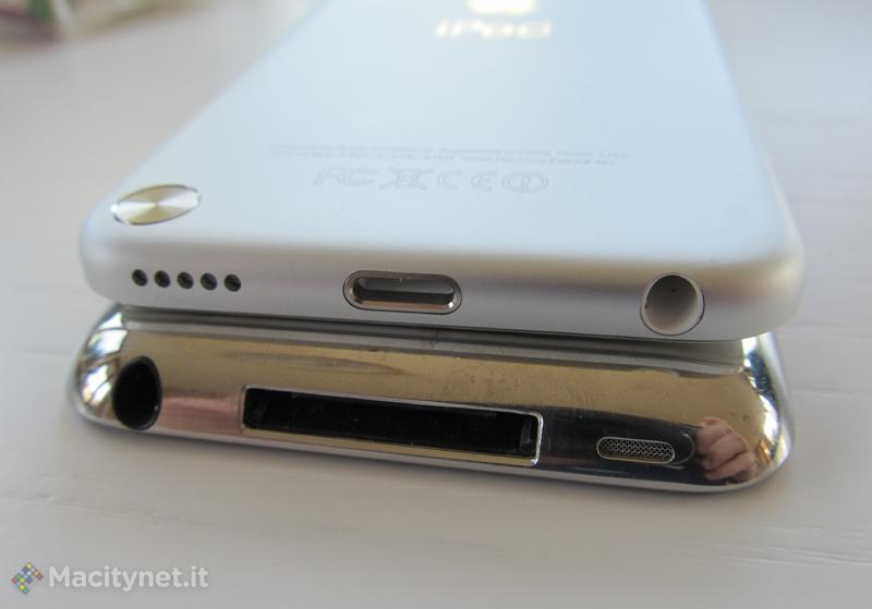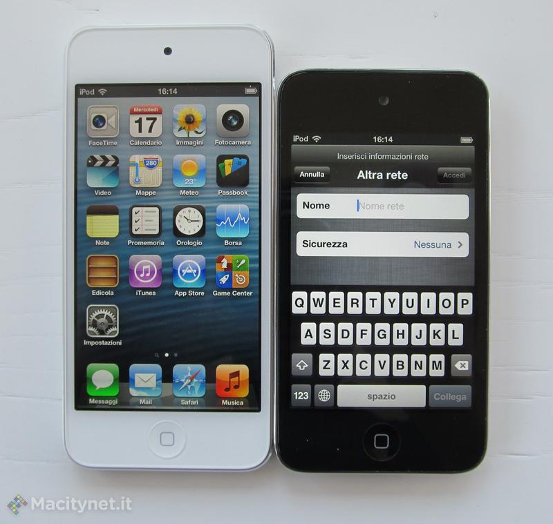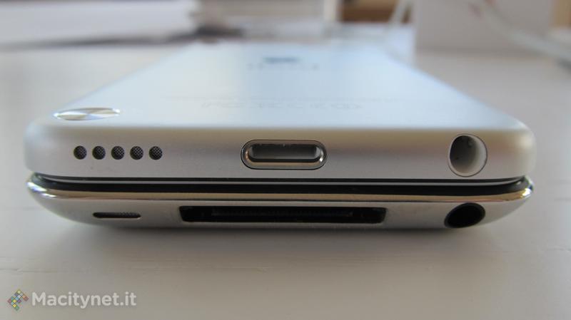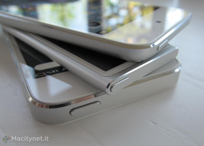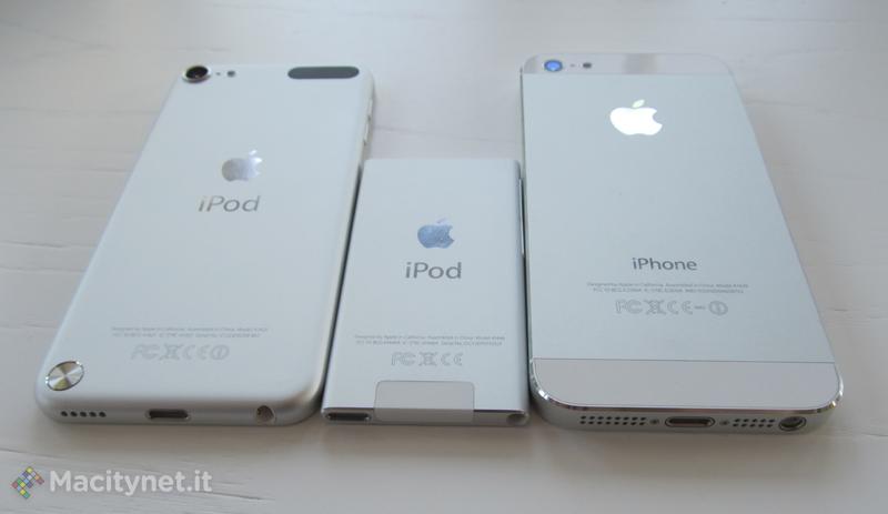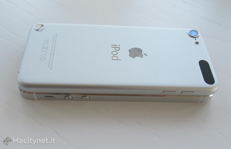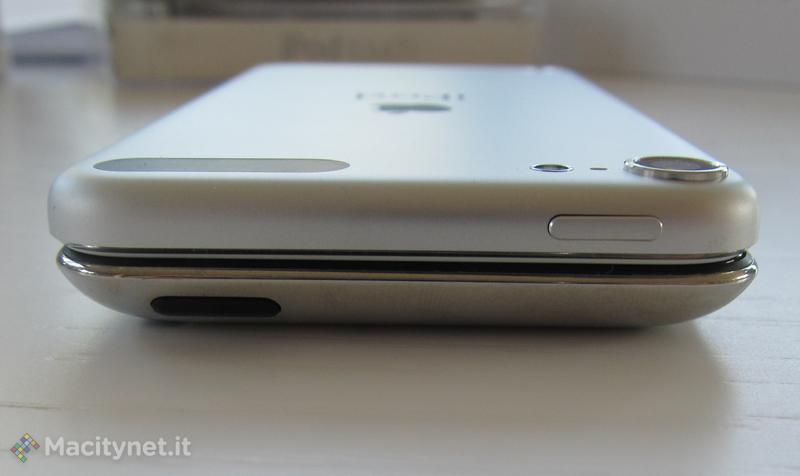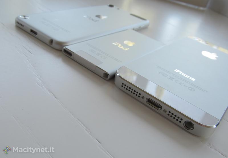 Ed ecco il confronto con iPhone 5 bianco-silver: per colori e finiture molto affine al modello di iPod touch che stiamo esaminando
