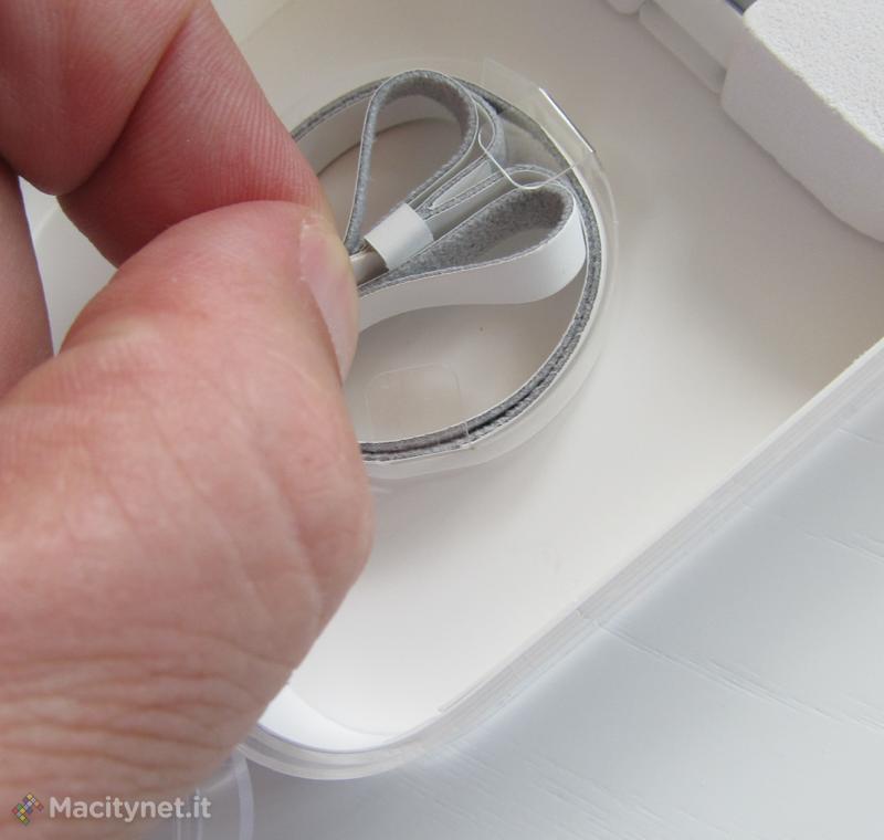 Un dettagglio della confezione delle cuffie in cartoncino anch’essa