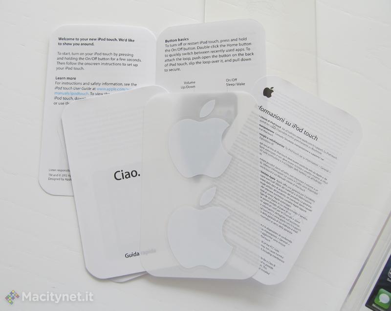 Il dettaglio dei librettini con garanzia e i classici adesivi Apple