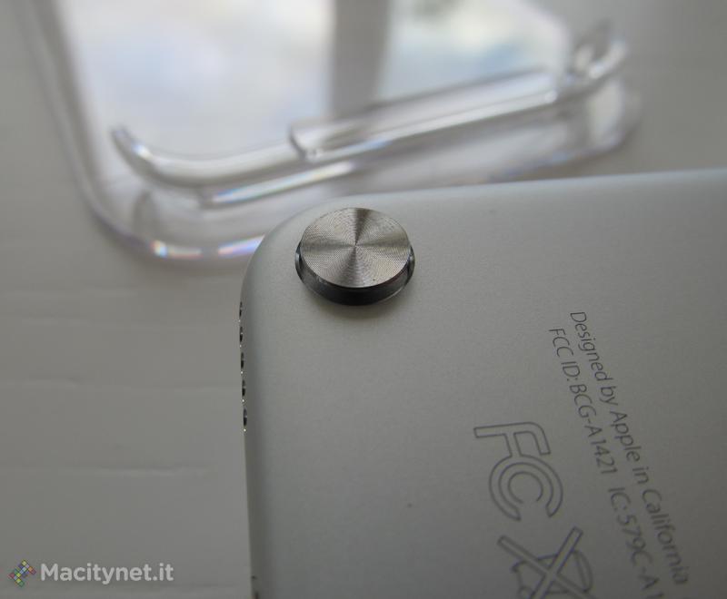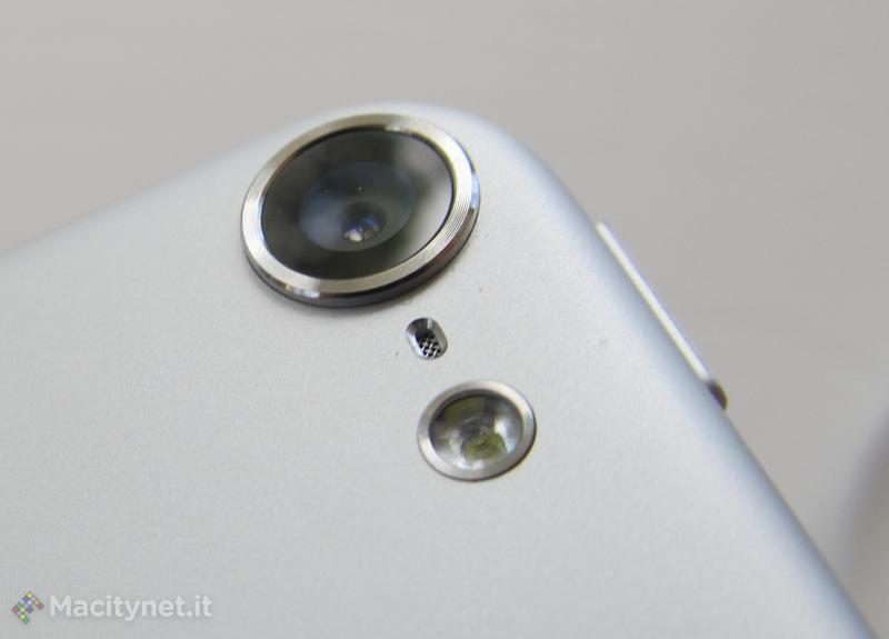 Il retro con camera, microfono, led e area per la trasparenza dell’antenna wi-fi