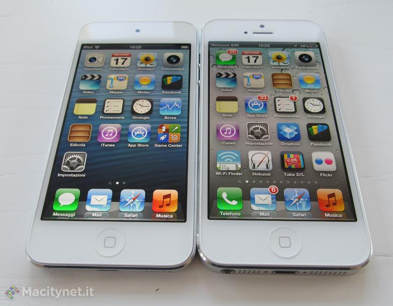 Qui il confronto con iPod touch di quinta generazione: il nuovo schermo da 4 si mostra in tutta la sua bellezza