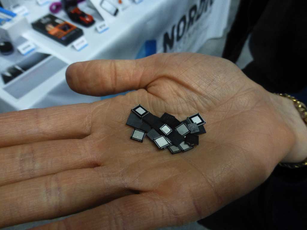 La società ha presentato anche il System-on-Chip EYSFJNXX, un modulo Bluetooth smart con integrato SoC, antenna, quarzo a 32 MHz, conforme alle specifiche Bluetooth, un dispositivo pensato per ciclo-computer, sensori per sport & fitness, controllo remoto, giocattoli. Nordic mostra soluzioni per Android e iOS di terze parti, incluso un protocollo per il controllo di luci e per l’automazione, sensori per la misurazione del battito cardiaco, strumenti per localizzare l’utente, misurare temperature, gestire aperture e allarmi, prese di corrente, un aereo e una nave giocattolo controllabili dalle schede SmartLink II.
