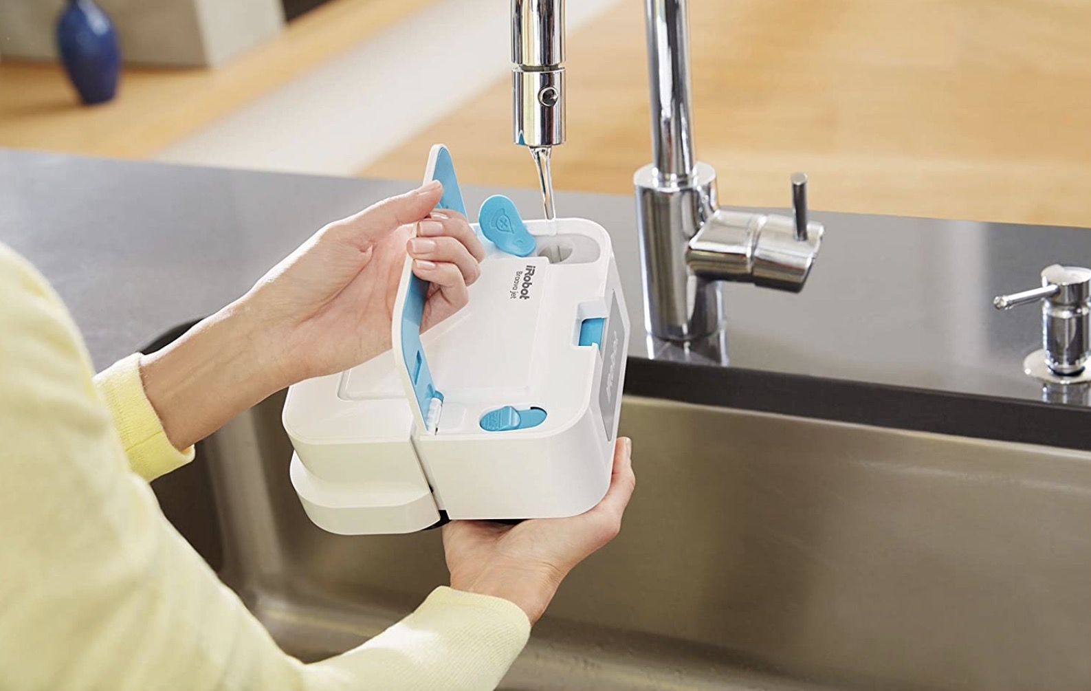 Stiamo parlando di un accessorio per la casa molto particolare. La sua funzione è sì quella di pulire ma anche e soprattutto quella di lavare. Per questo ha un sistema a getto d’acqua che scioglie sporco e macchie e le strofina per eliminarli e successivamente asciuga. In pratica fa quello che fareste voi con uno straccio e detersivo. Lo scopo viene raggiunto utilizzando una serie di accorgimenti dalla forma del robot, non rotondo ma quadrato per raggiungere anche gli angoli a un sistema “smart” che seleziona la tipologia della pulizia a seconda del tipo di panno Braava prescelto.