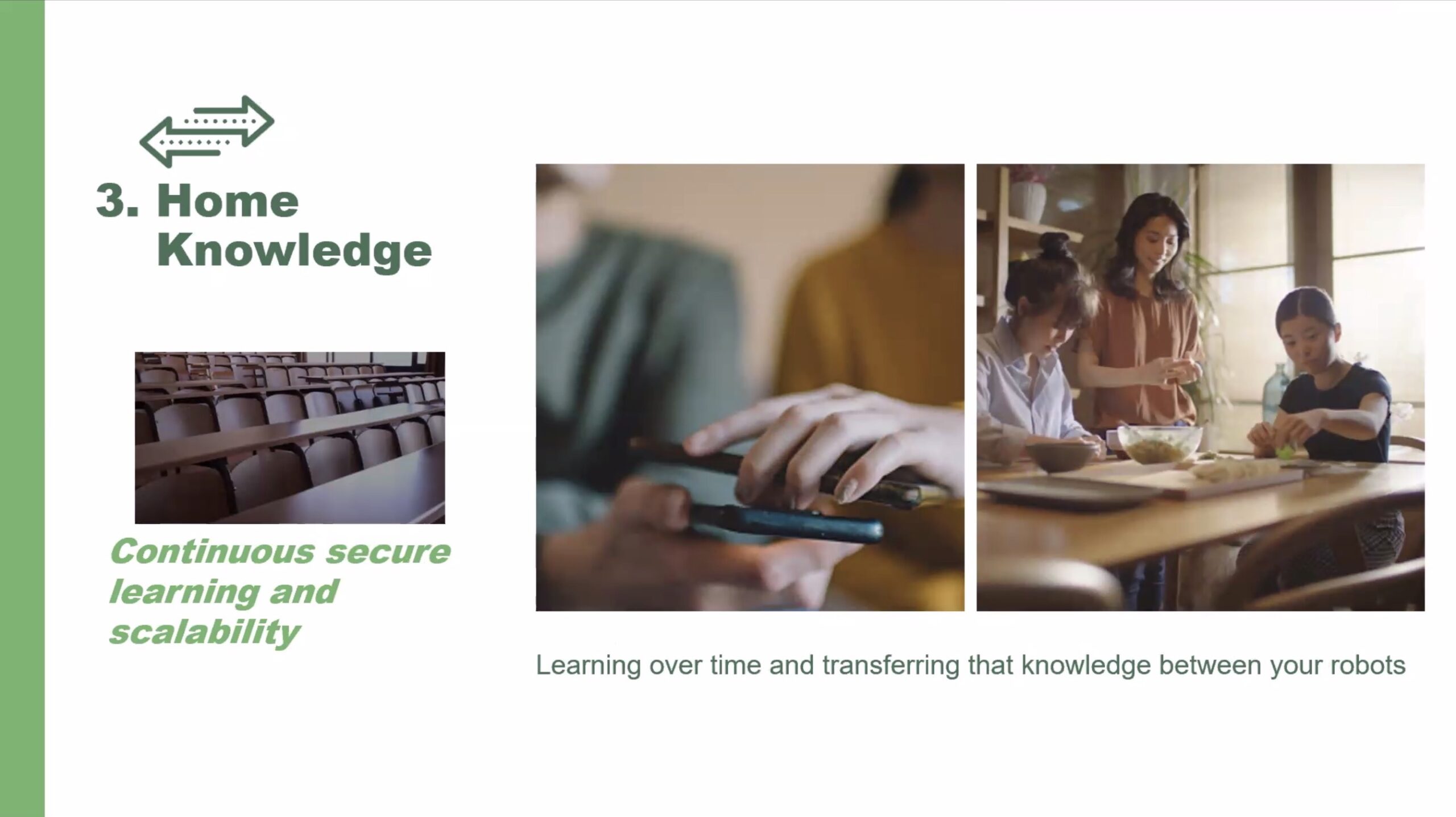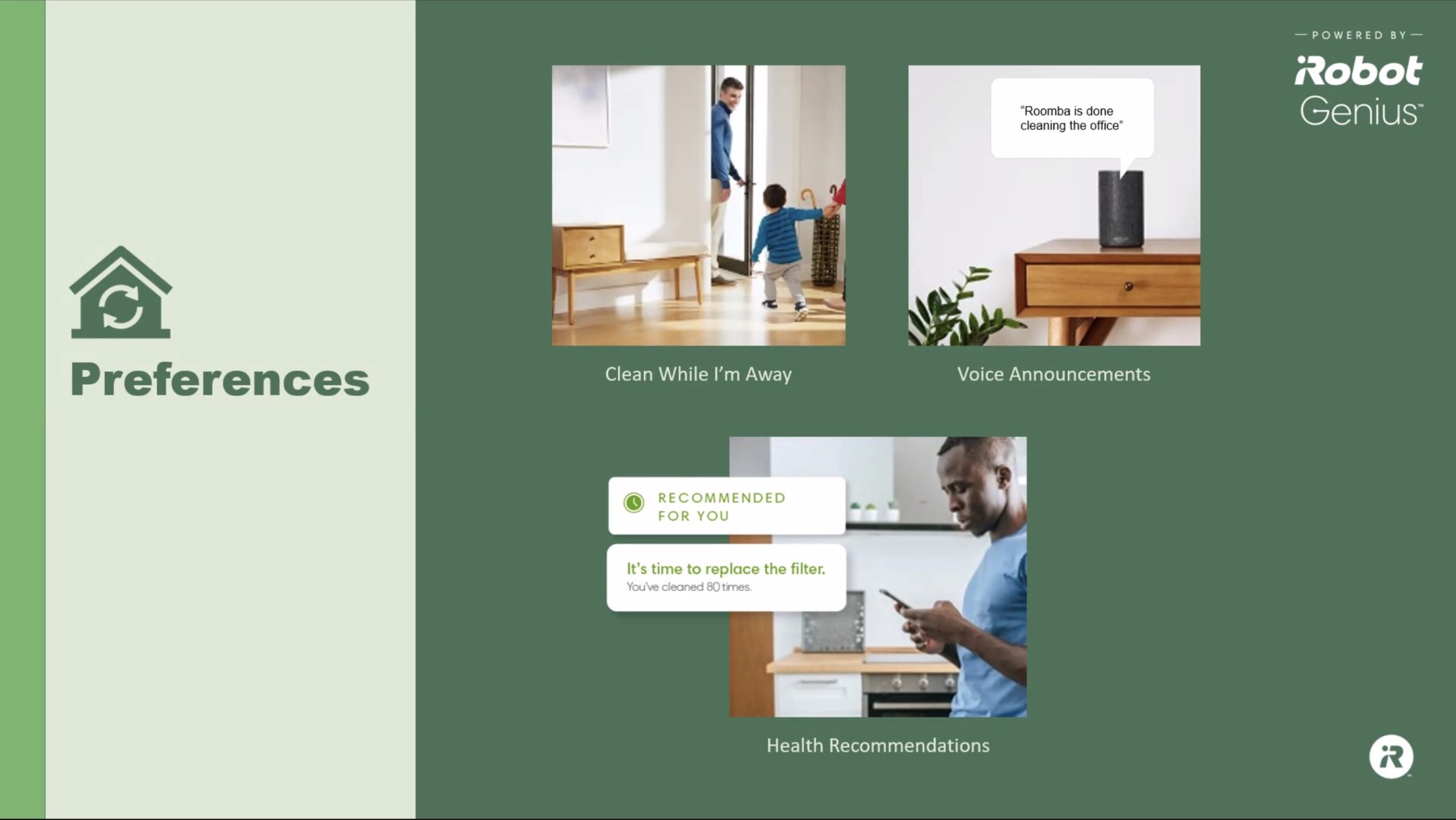 Con iRobot Home Intelligence 3.0 si fa passo avanti nel coordinare i tre principi del buon uso di un assistente domestico robotizzato: le regole della casa, le preferenze dell’utente e la conoscenza dell’ambiente.