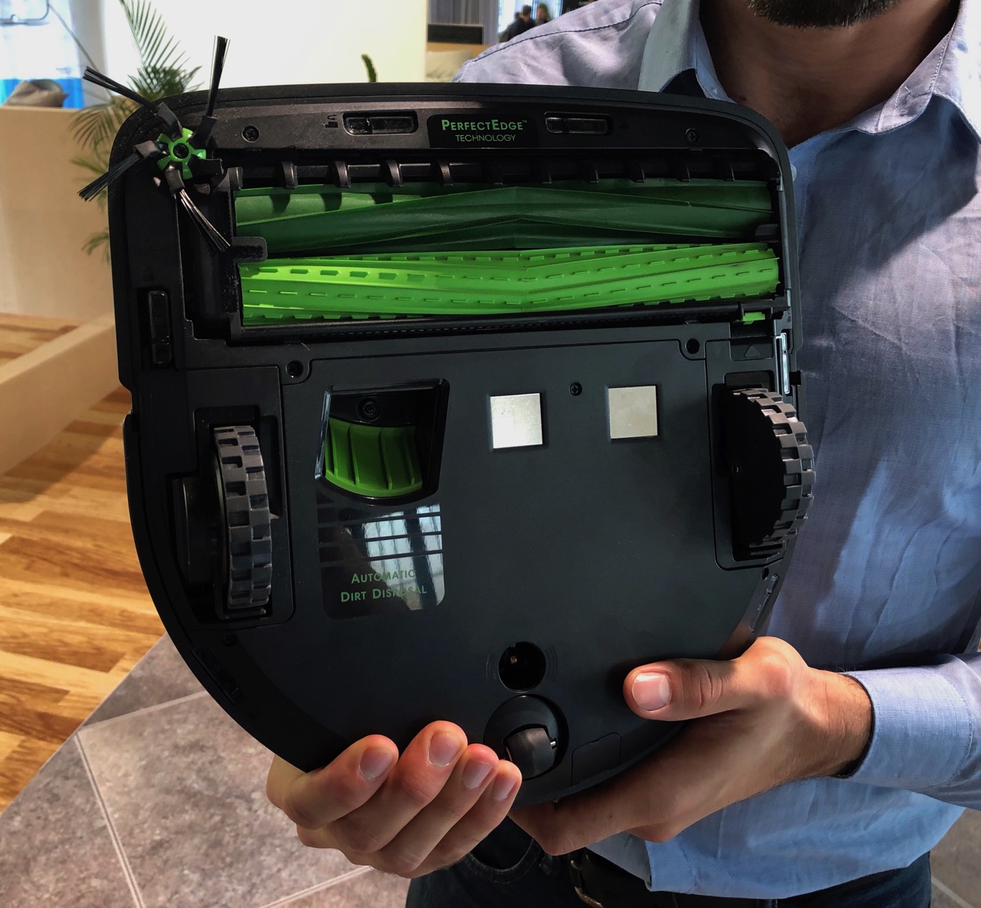 Grazie poi alla tecnologia PerfectEdge, che si avvale di una doppia spazzola in gomma più larga del 30% e di una spazzola angolare appositamente progettata – ciascuna possiede un battistrada in grado di aderire costantemente alle superfici da pulire, dai pavimenti ai tappeti, regolandosi e flettendosi secondo necessità per raccogliere ogni forma di sporco – che utilizzano cinque bracci inclinati per raccogliere lo sporco negli angoli e lungo i muri, portandolo sul percorso del robot affinché possa essere aspirato.