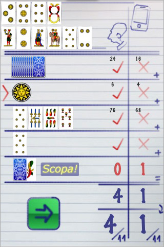 Per chi ama i giochi di carte anche in versione digitale il provvidenziale Luigi Castiglione ha reso disponibile il gioco della scopa per iPhone e touch. L’interpretazione è quella tradizionale, storica: 40 carte del tipo napoletano con denari, spade, bastoni e coppe. Grafica pulita, mancano purtroppo i suoni e soprattutto la possibilità di giocare con concorrenti umani. Gli appassionati devono così scontrarsi con le abilità del proprio iPhone/touch.