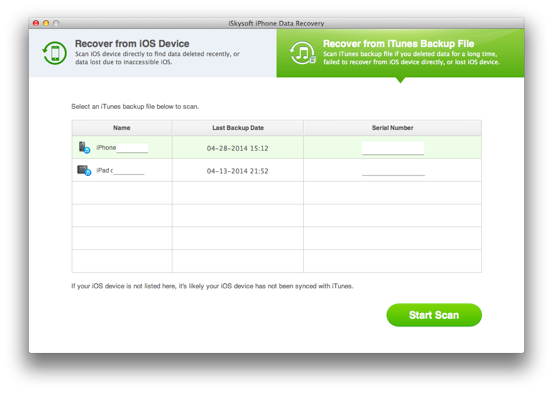 iSkysoft iPhone Data Recovery è il software per PC e Mac in grado di recuperare in pochi e semplici click, dati accidentalmente cancellati dai dispositivi iOS, o andati comunque persi a causa di danni al dispositivo. In modo del tutto simile a Dr. Fone di Wondershare, questo iSkysoft iPhone Data Recovery di iSkysoft permette di recuperare i dati sia direttamente dal dispositivo, sia dall’ultimo backup iTunes, nel caso in cui non fosse più disponibile il dispositivo iOS da ripristinare.