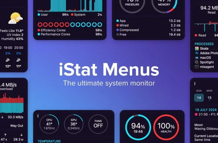 iStat Menus è una utility Mac che permette di visualizzare dettagli relativi a CPU, GPU, memoria, rete, utilizzo di dischi, attività, batteria. È possibile mostrare grafici e dettagli vari con diverse modalità di visualizzazione dei dati.