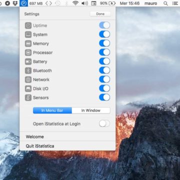 Oltre che dalla finestra richiamabile dalla barra dei menu, è possibile visualizzare i vari parametri di riferimento nel Notification Center o in una finestra dedicata. Lo sviluppatore permette di scegliere per l’applicazione sia un tema chiaro, sia un tema scuro.